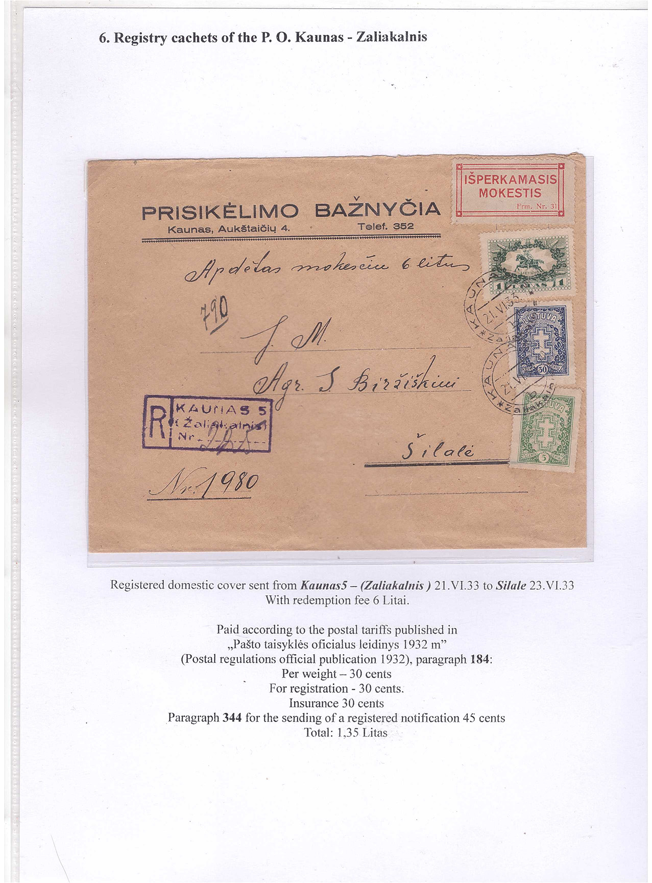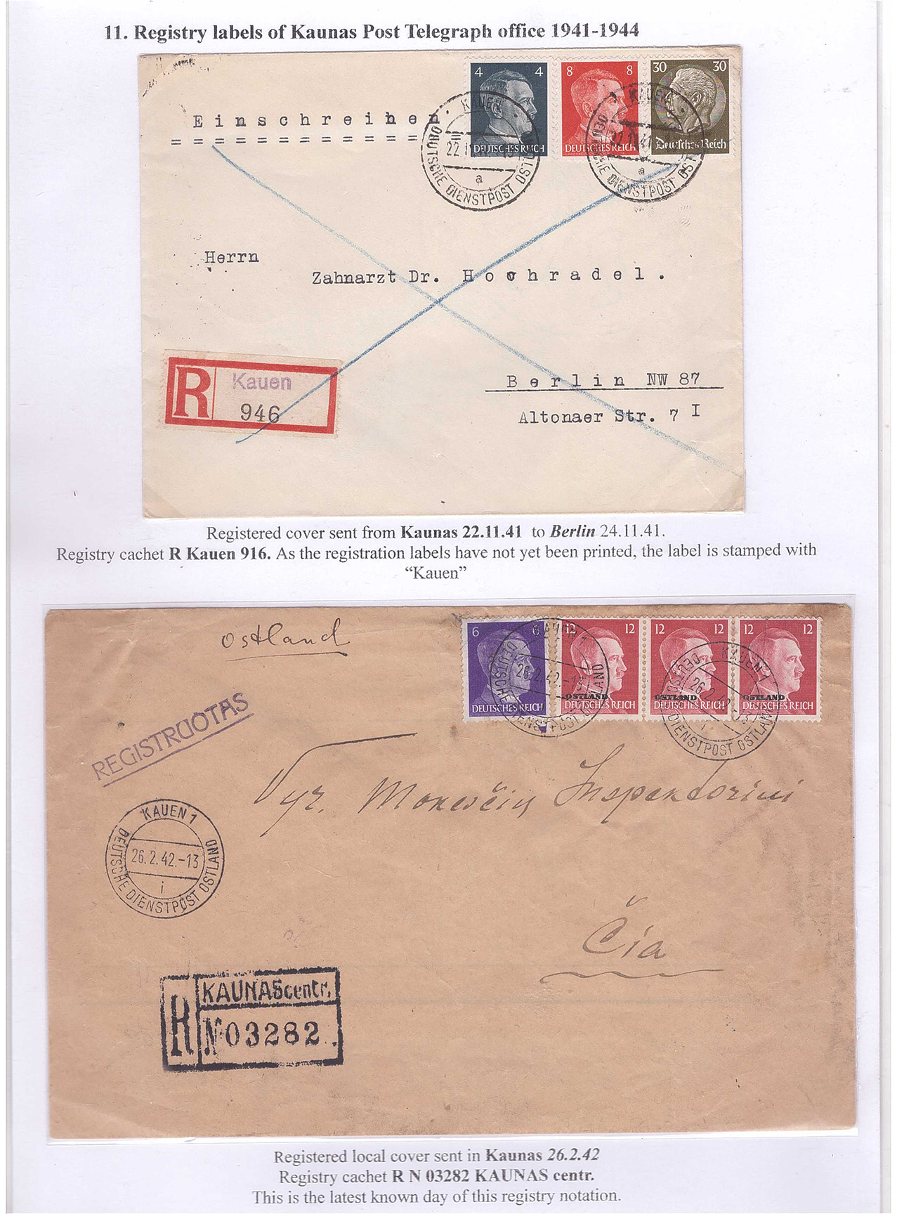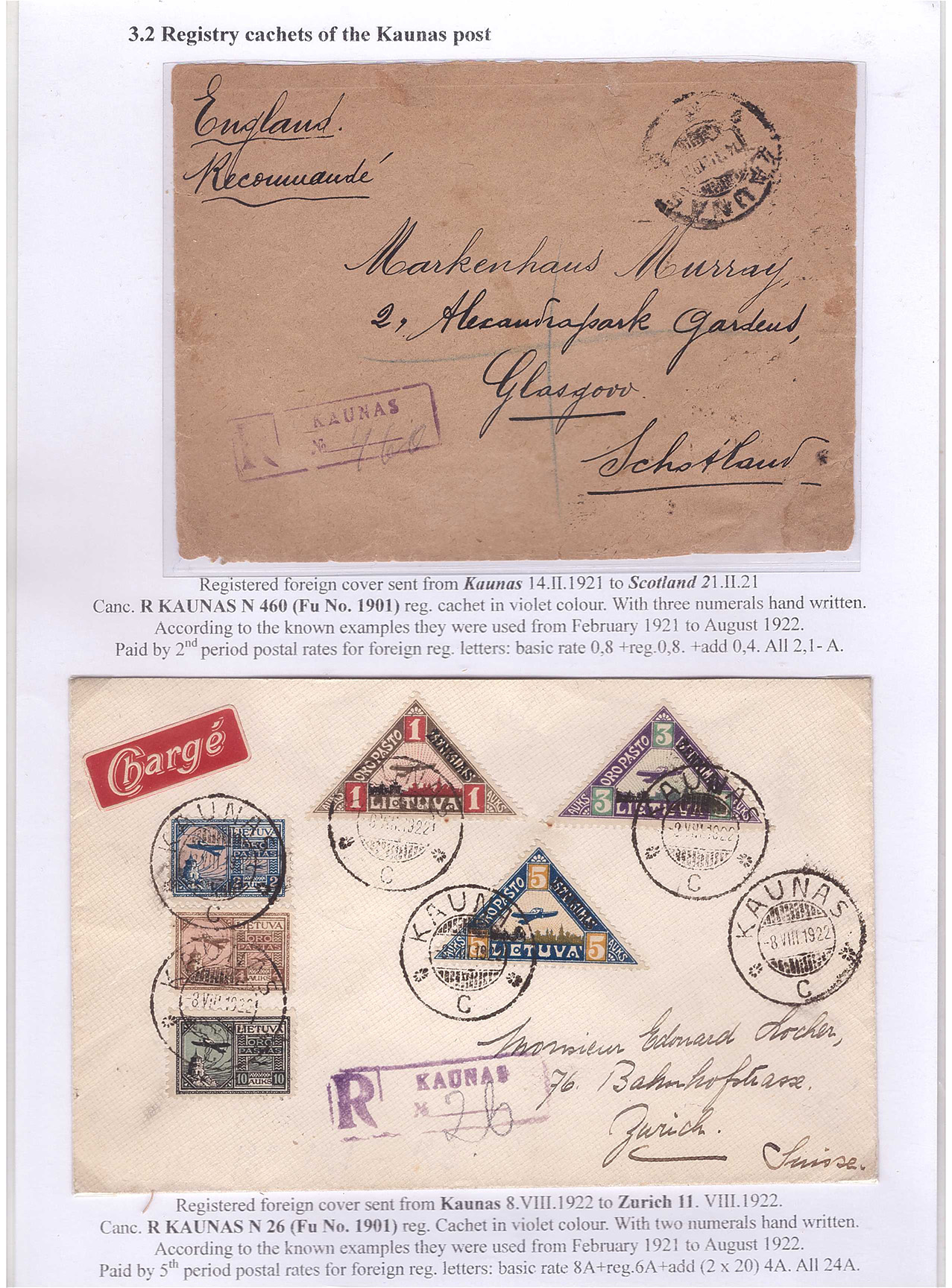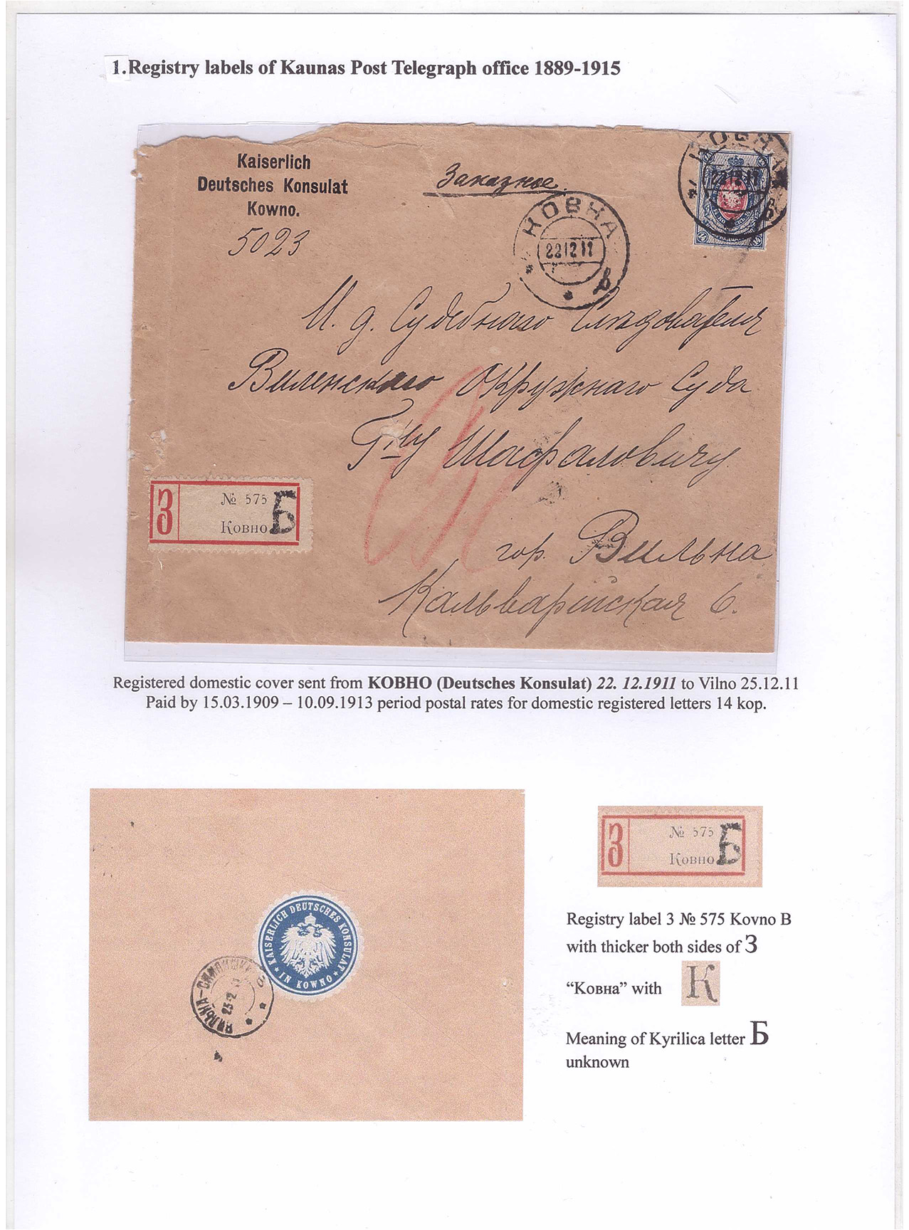 Registry Labels and Cachets of Kaunas Post Telegraph Office