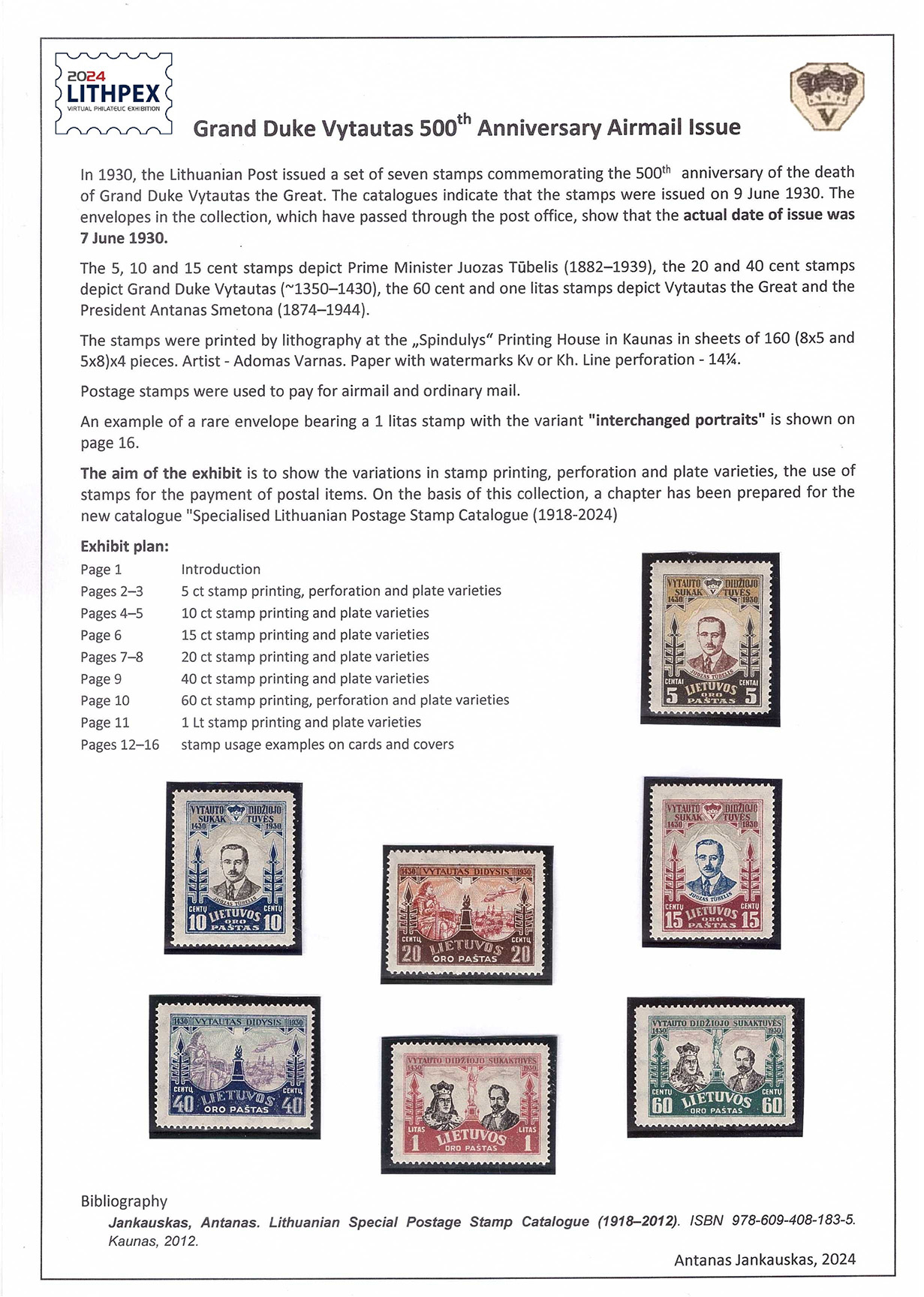 Description: In 1930, the Lithuanian Post issued a set of seven stamps commemorating the 500th anniversary of the death