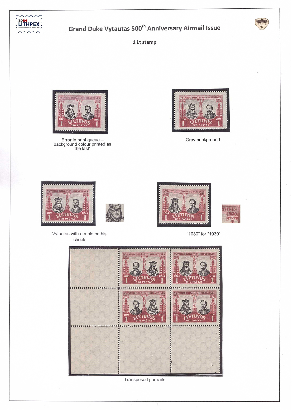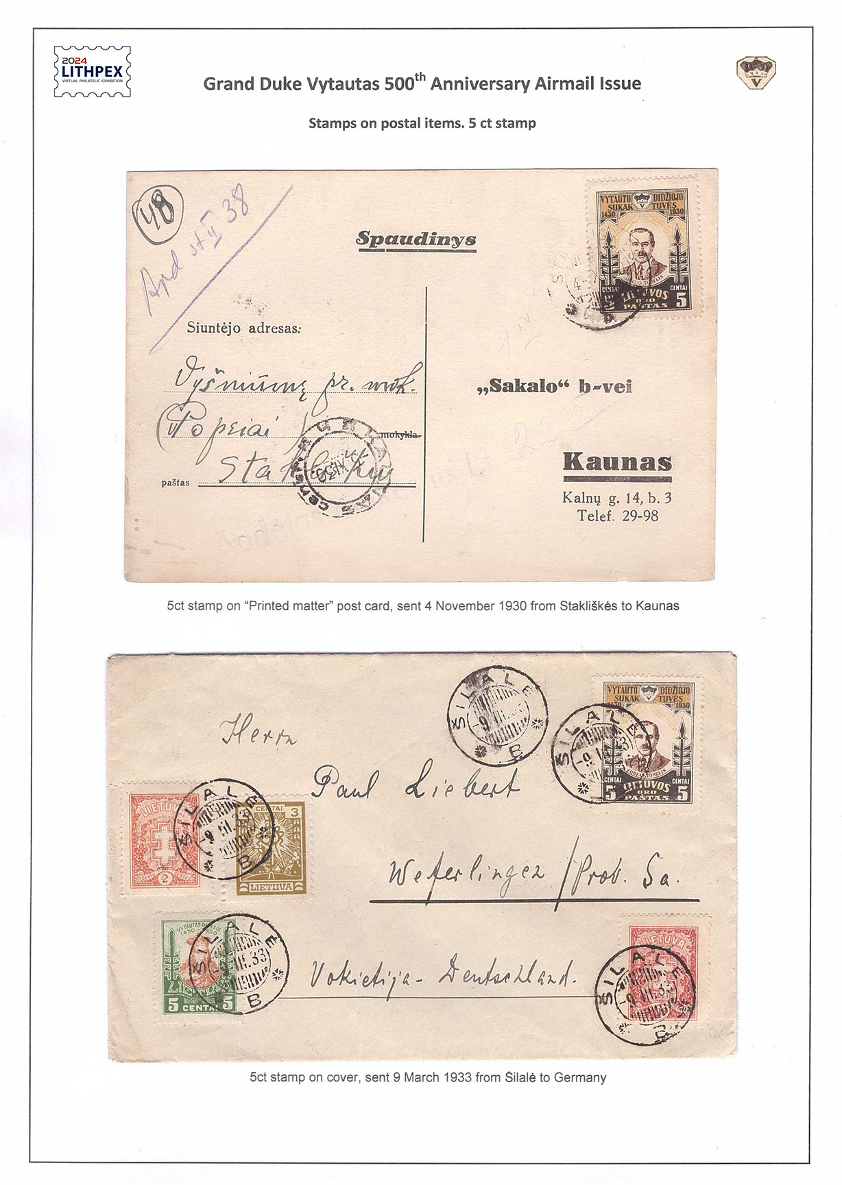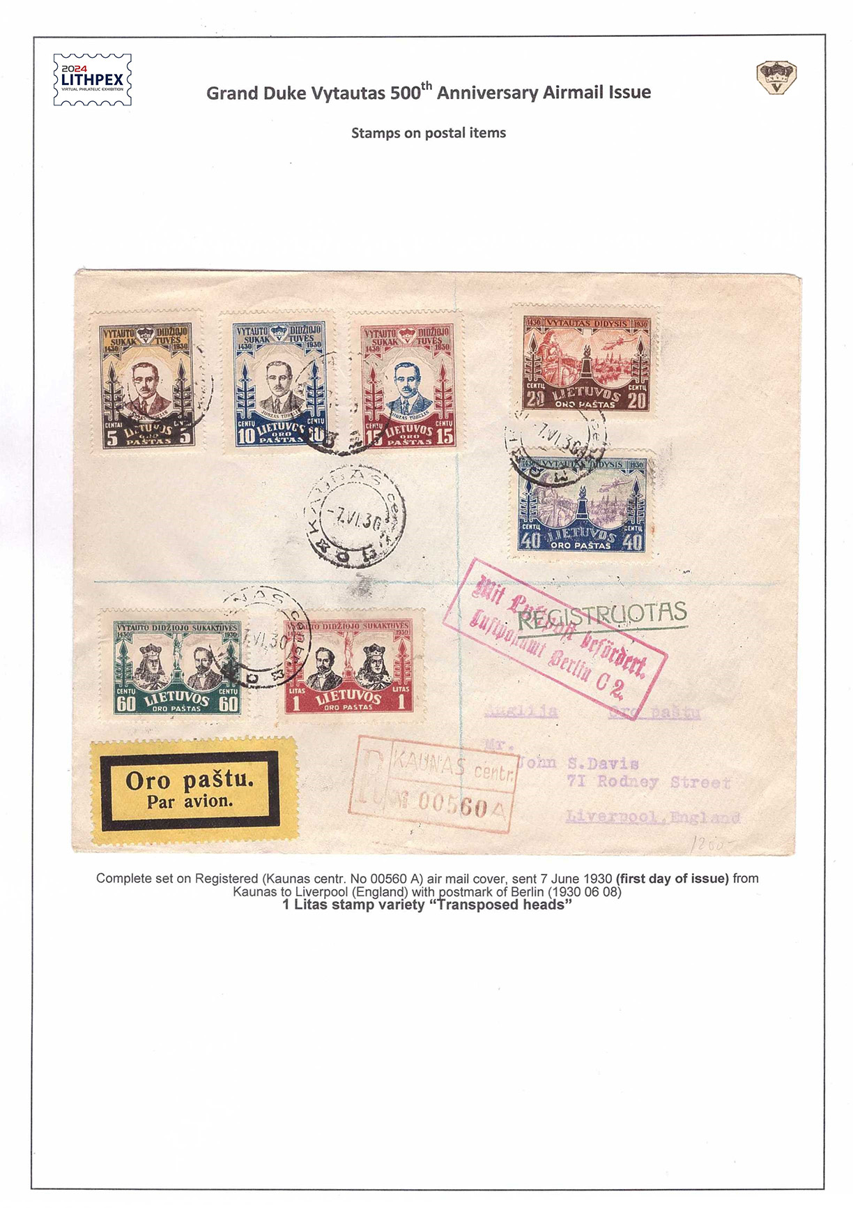 An example of a rare envelope bearing a 1 litas stamp with the variant “interchanged portraits” is shown on page 16.