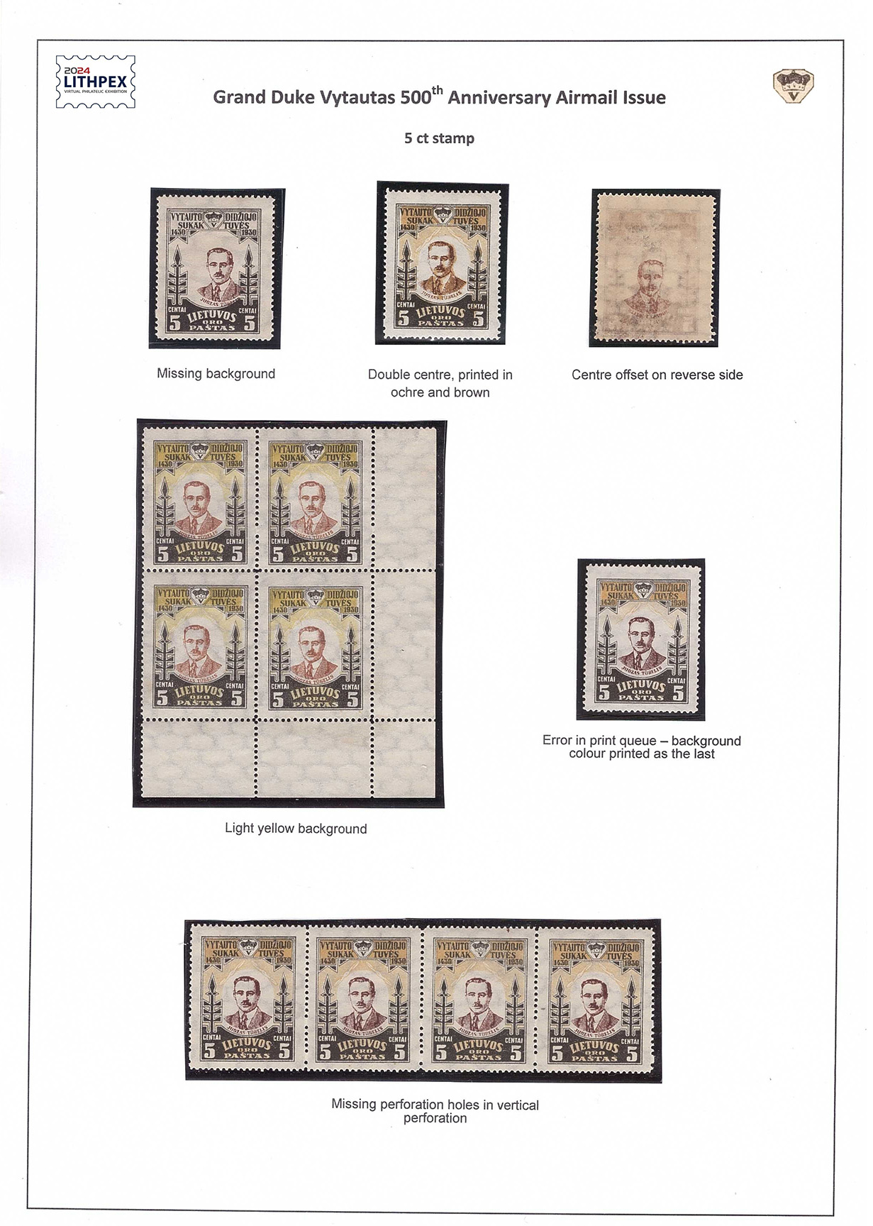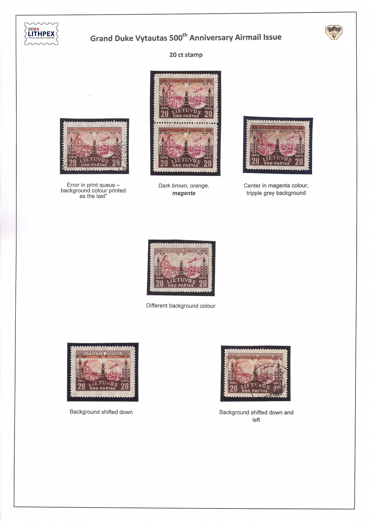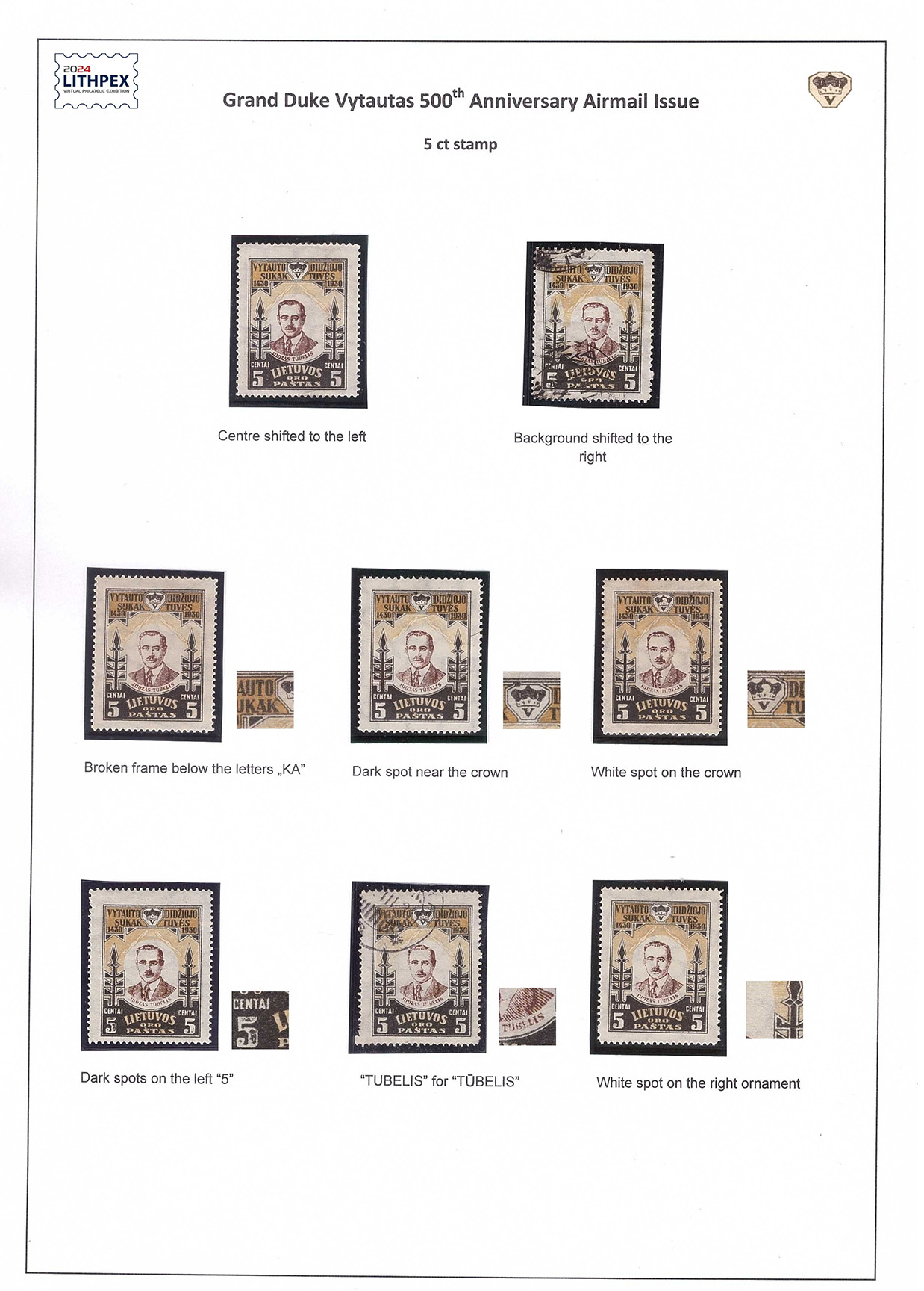 An example of a rare envelope bearing a 1 litas stamp with the variant “interchanged portraits” is shown on page 16.