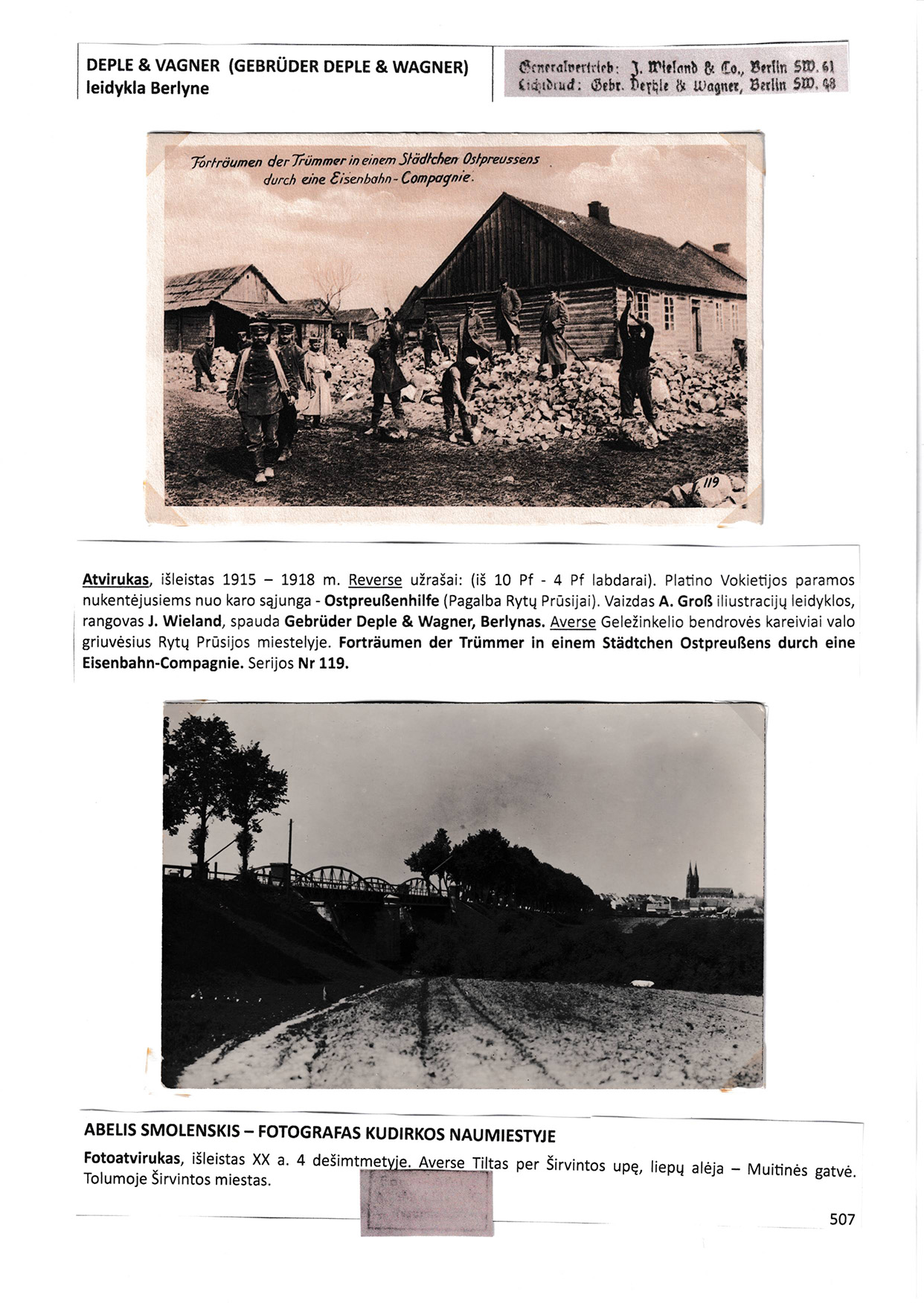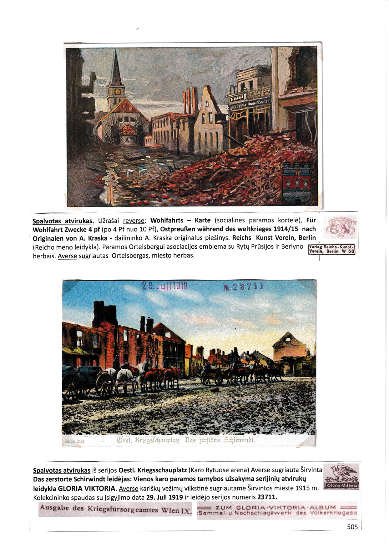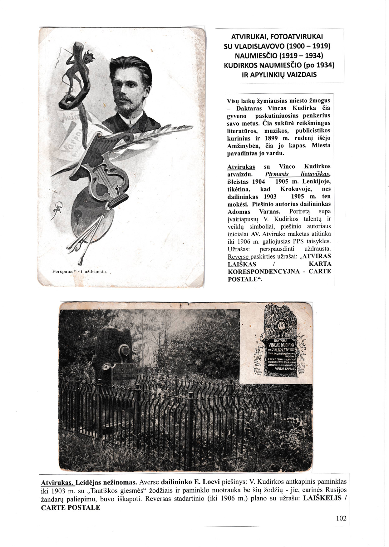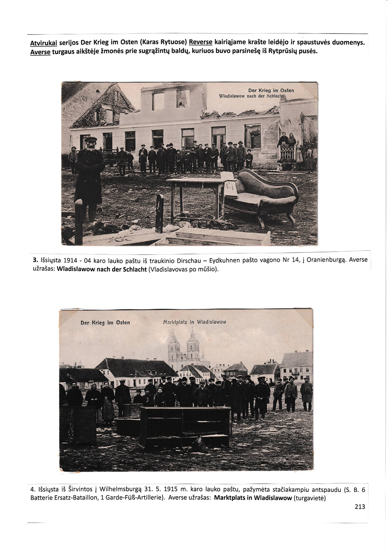 The exhibit consists of 5 frames with 163 postcards: 79 of them were published by 12 local publishing houses operating in the Pilkalnis and Naumiestis counties; 42 are from 6 publishers in East Prussia; 26 from 11 publishers in Germany; 1 from Austria; and 4 postcards by 3 Lithuanian authors, printed in Lithuania, the USA, and Poland.
