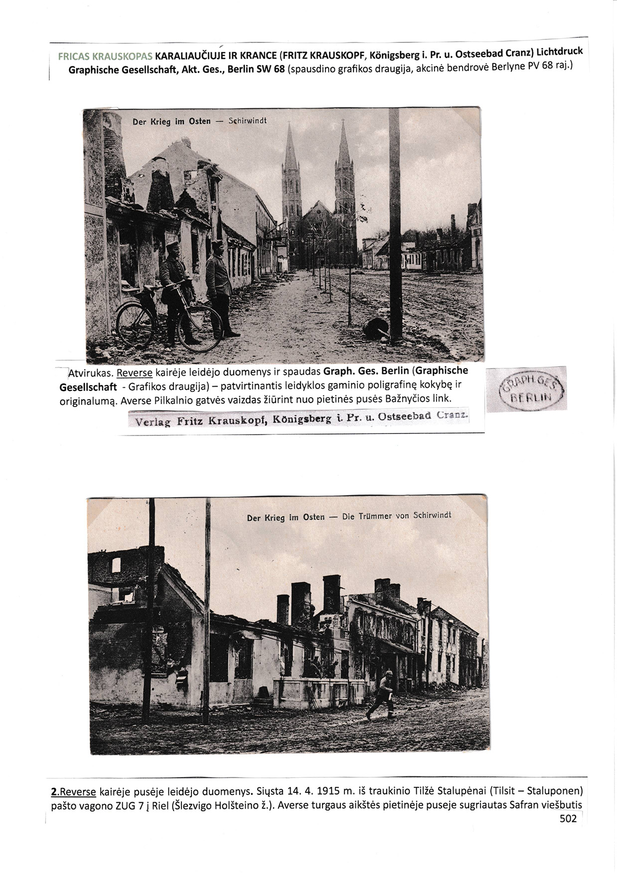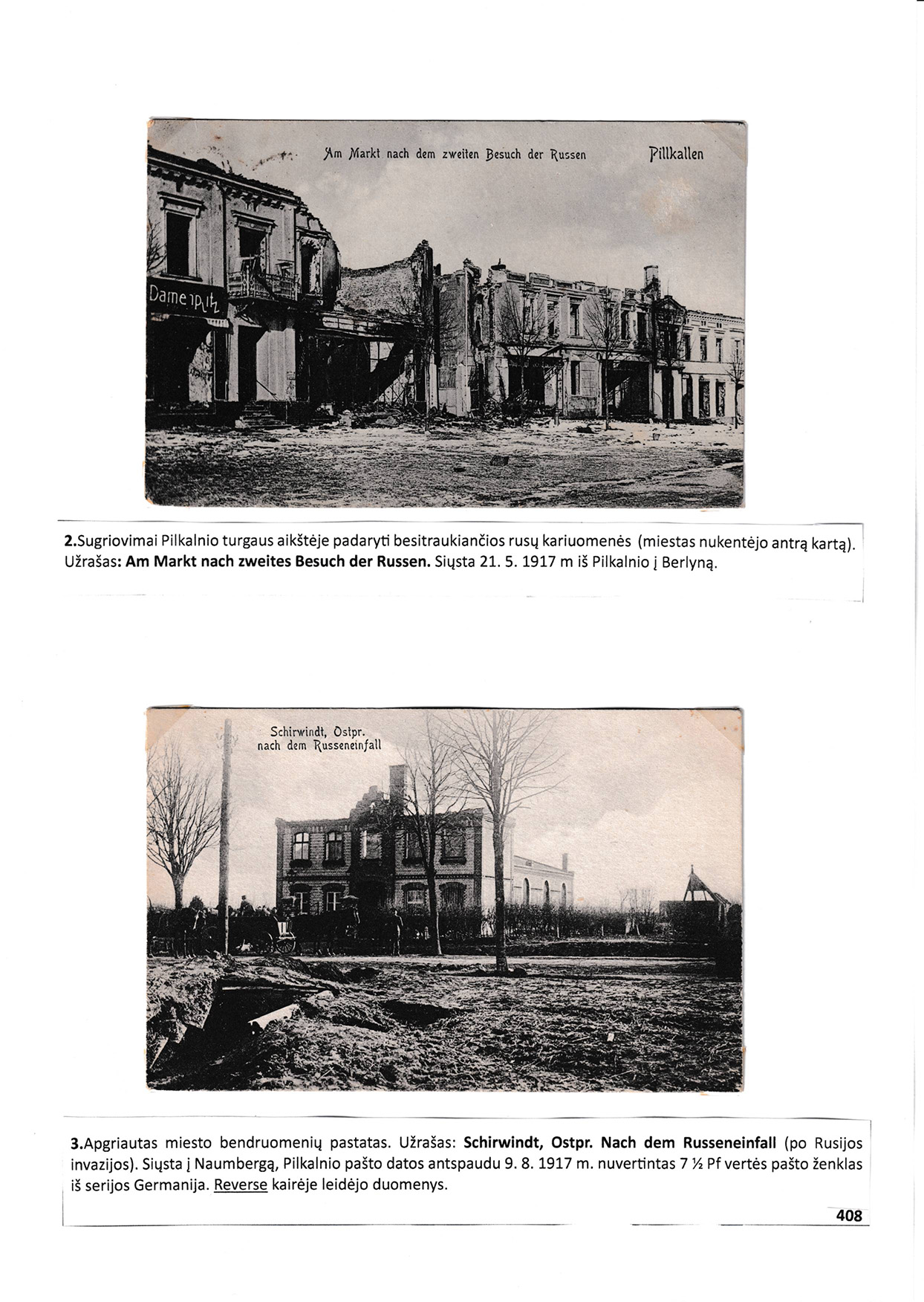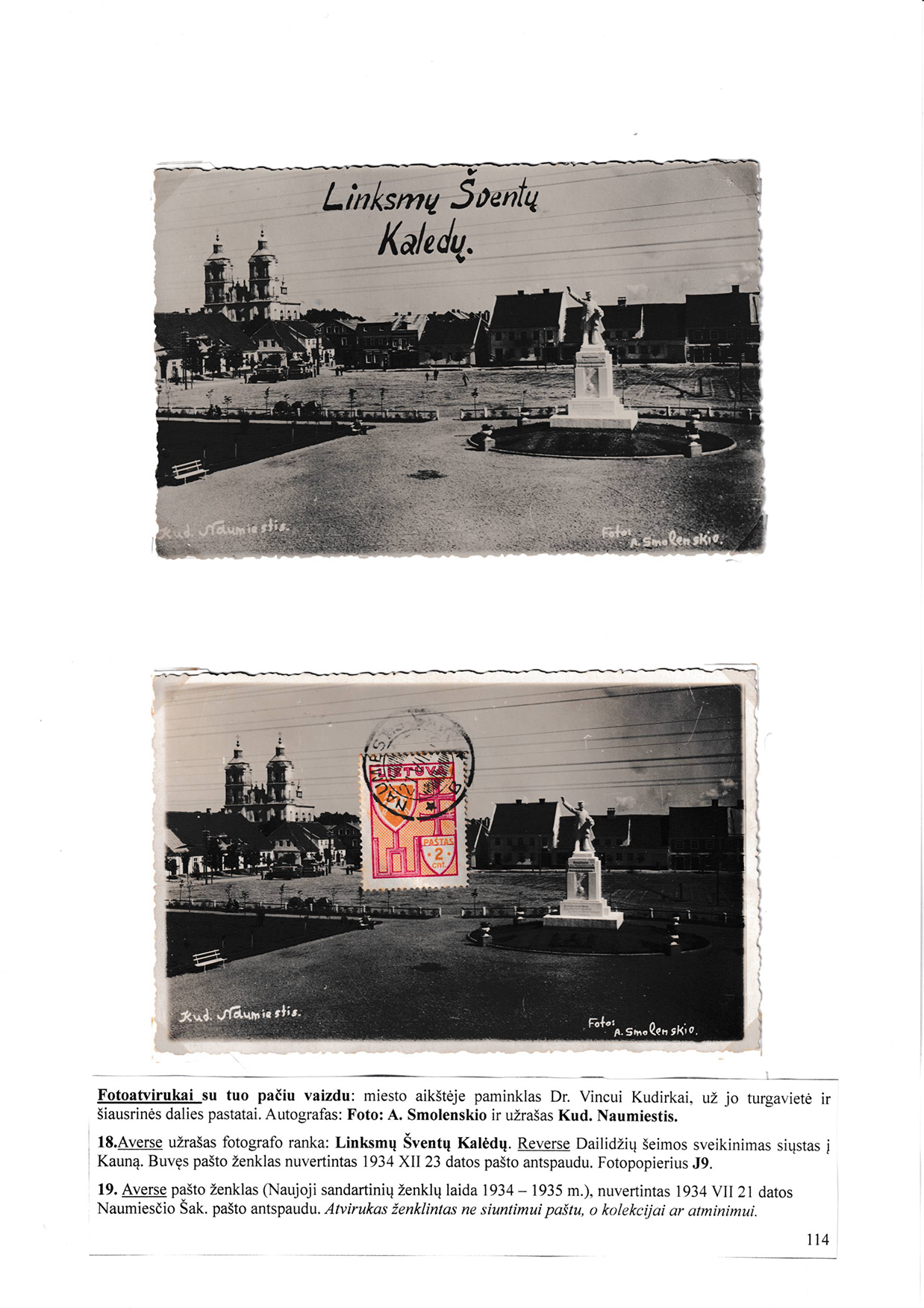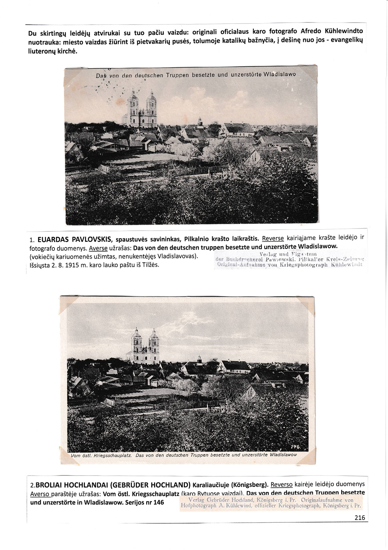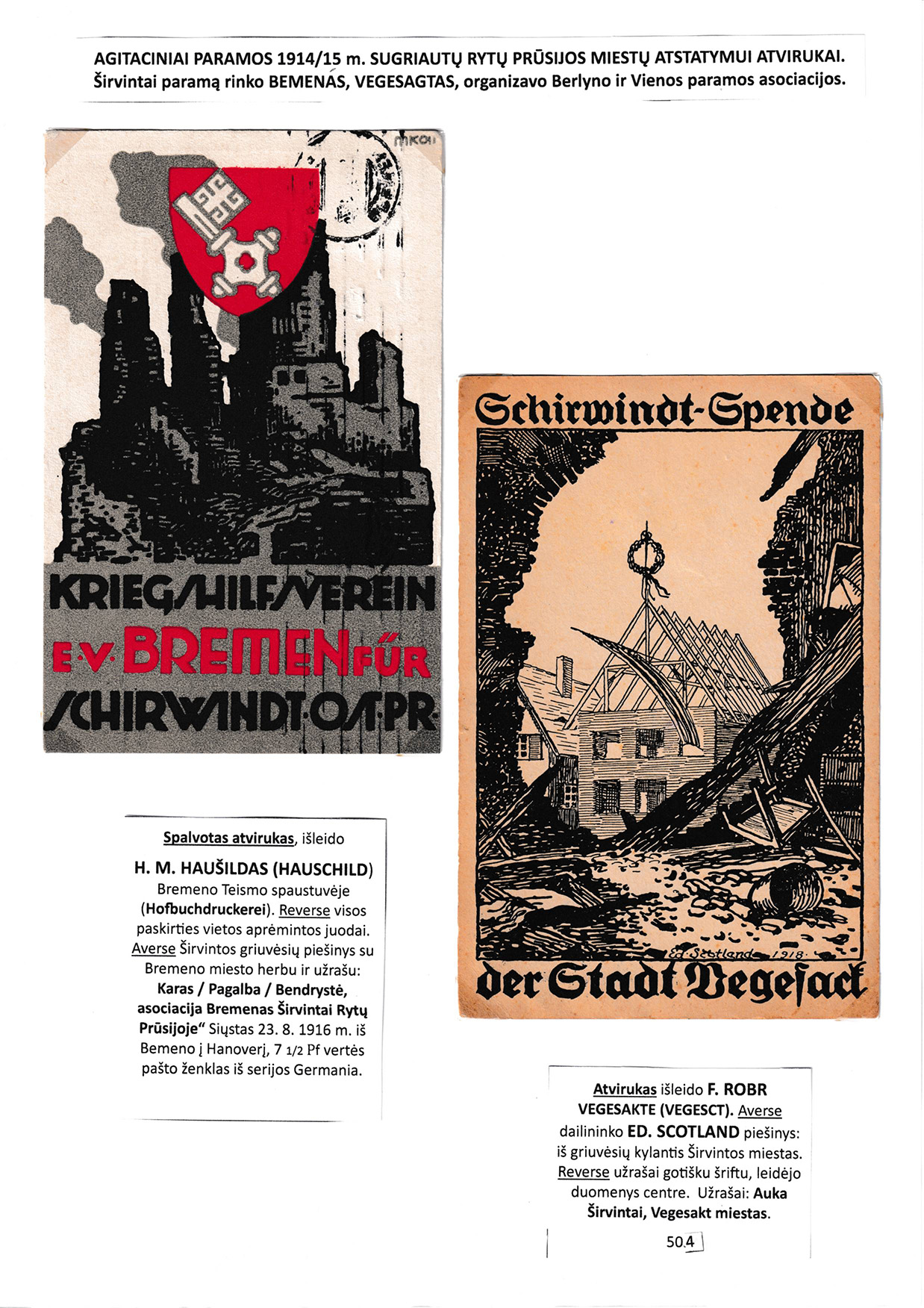 The exhibit consists of 5 frames with 163 postcards: 79 of them were published by 12 local publishing houses operating in the Pilkalnis and Naumiestis counties; 42 are from 6 publishers in East Prussia; 26 from 11 publishers in Germany; 1 from Austria; and 4 postcards by 3 Lithuanian authors, printed in Lithuania, the USA, and Poland.
