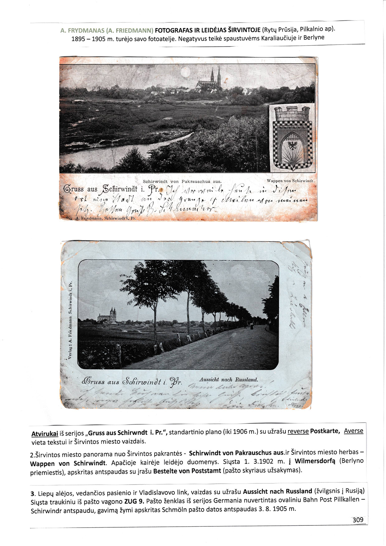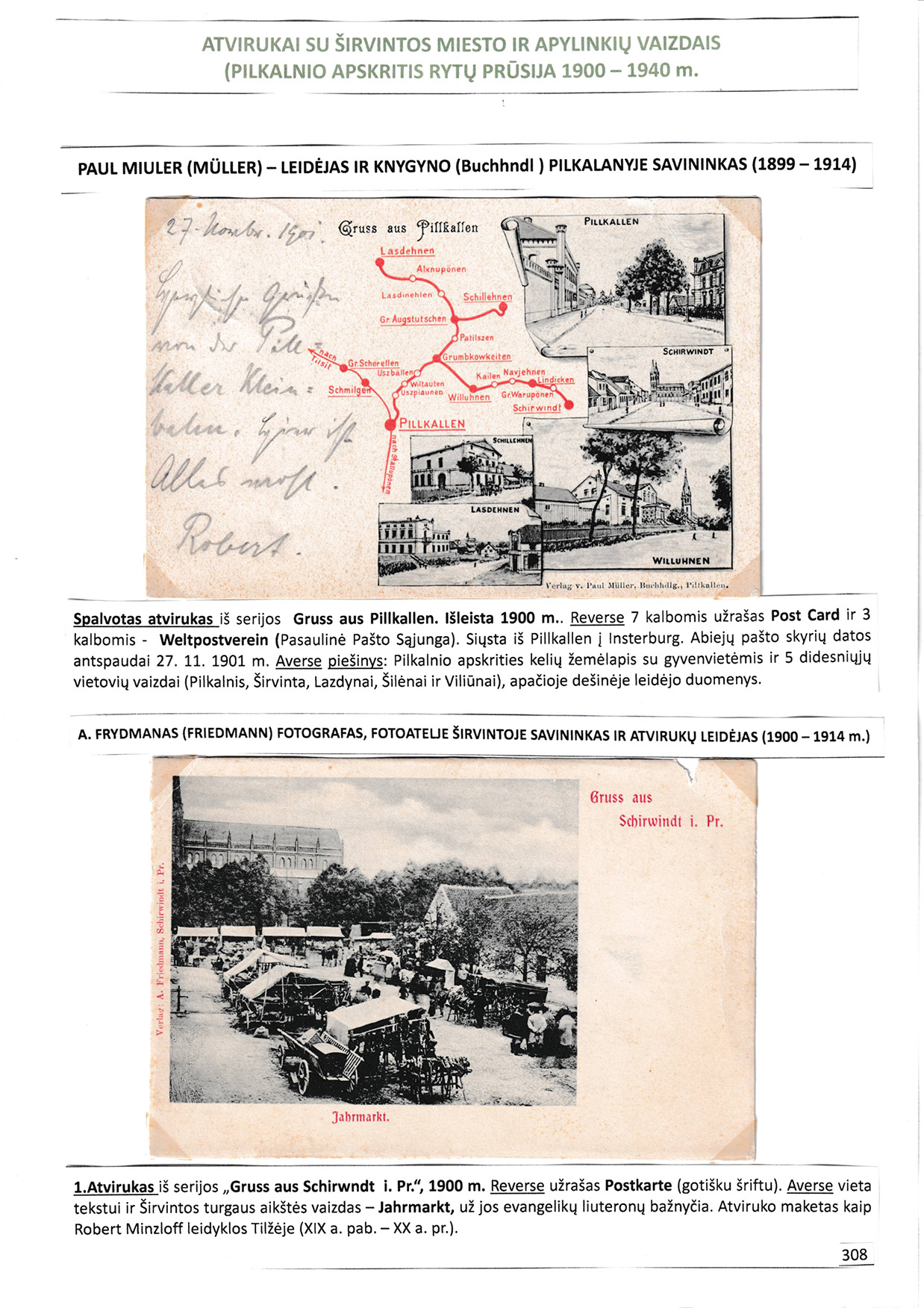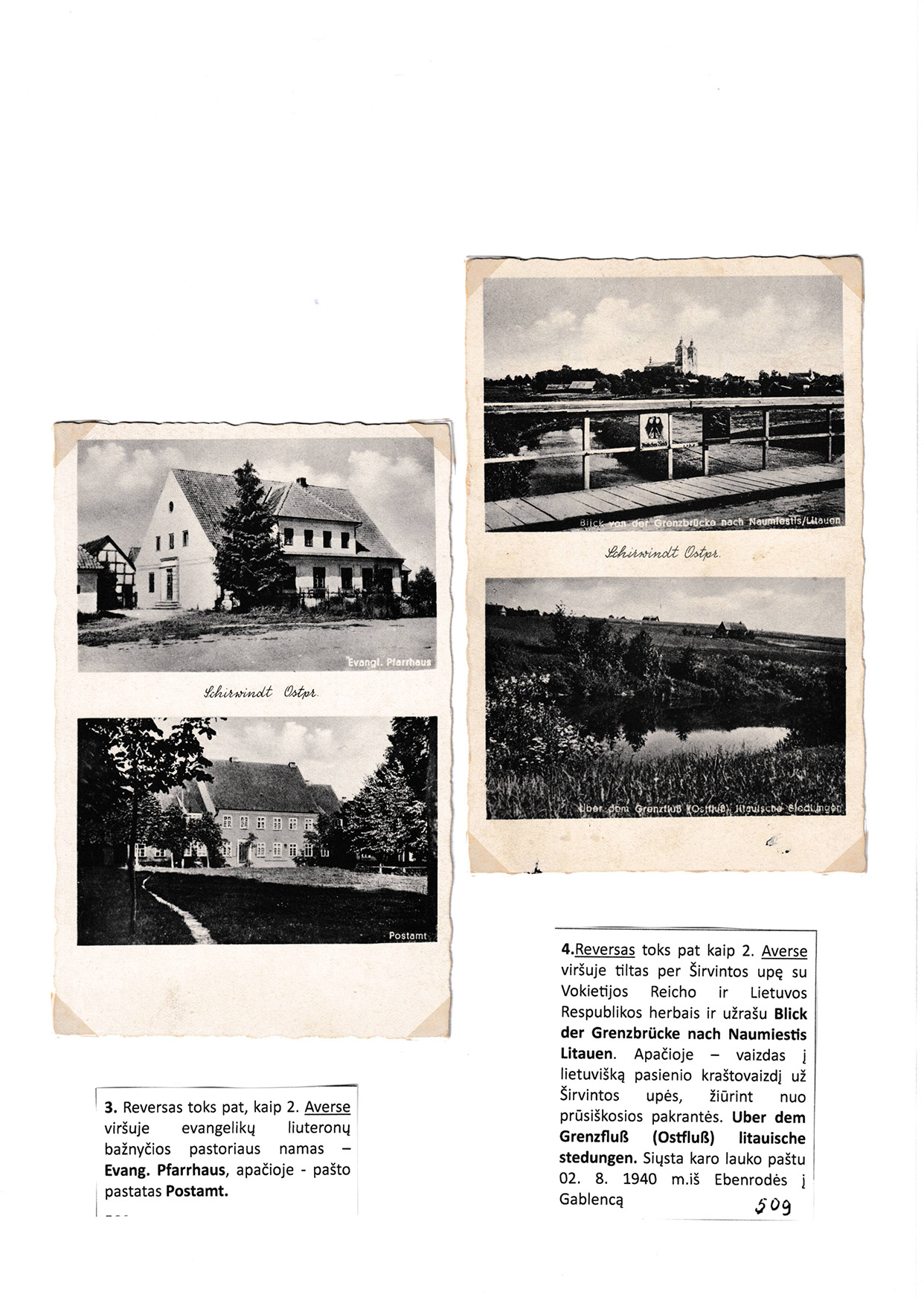 Views of both cities were captured by local and distant photographers, some of the photos were published as postcards. Thanks to them, we can now see what Kudirkos Naumiestis and Širvinta looked like in the first half of the 20th century. This is important because the town of Širvinta is gone. It is the only city in Europe that was not rebuilt after the Second World War. The exhibition presents a collection of our family postcards and their publishing research: postcard publishers, photographers, to whom we are grateful for this historical memory and publishing, printing houses in various European cities.
